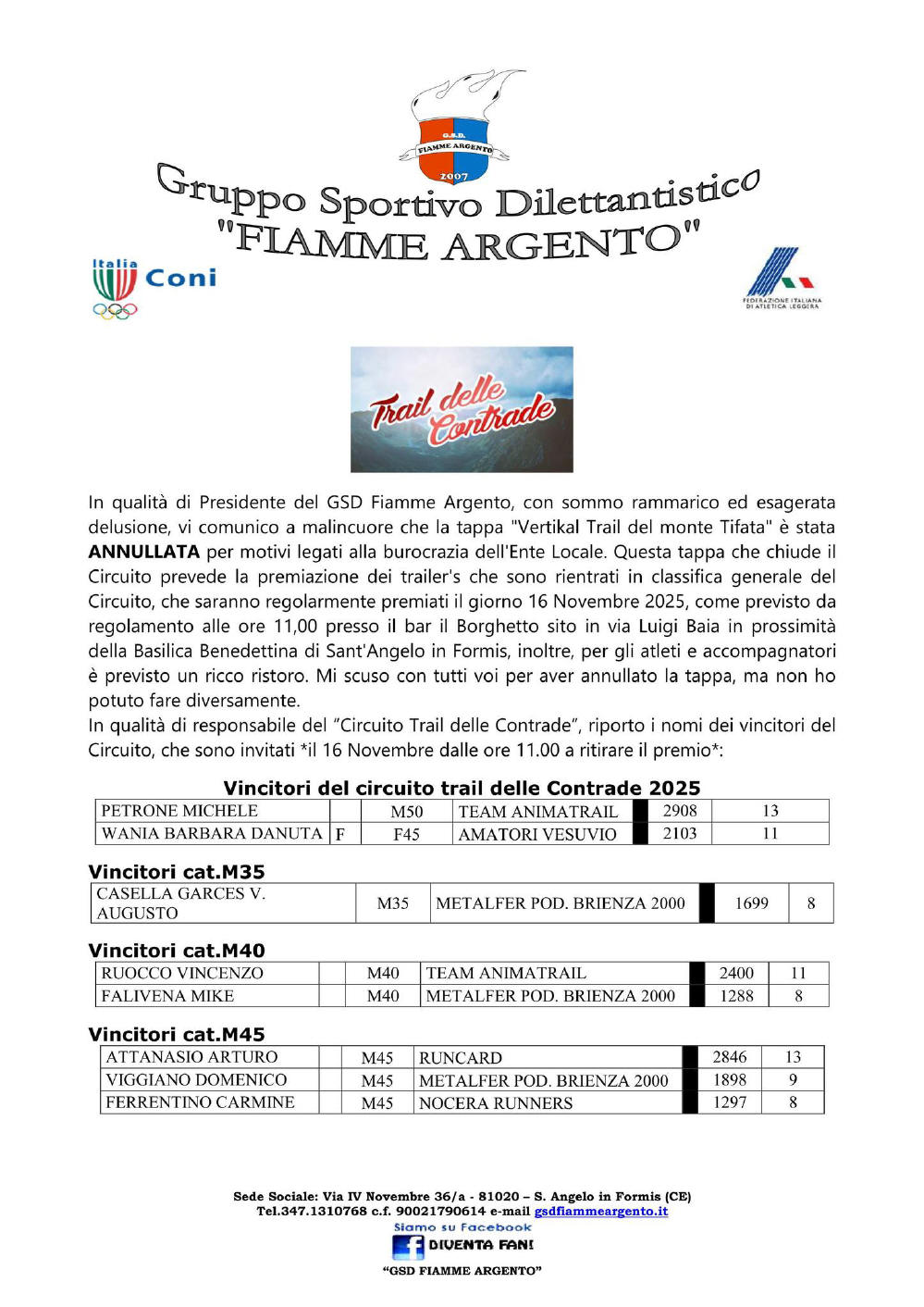 attinenti al podismo in Campania