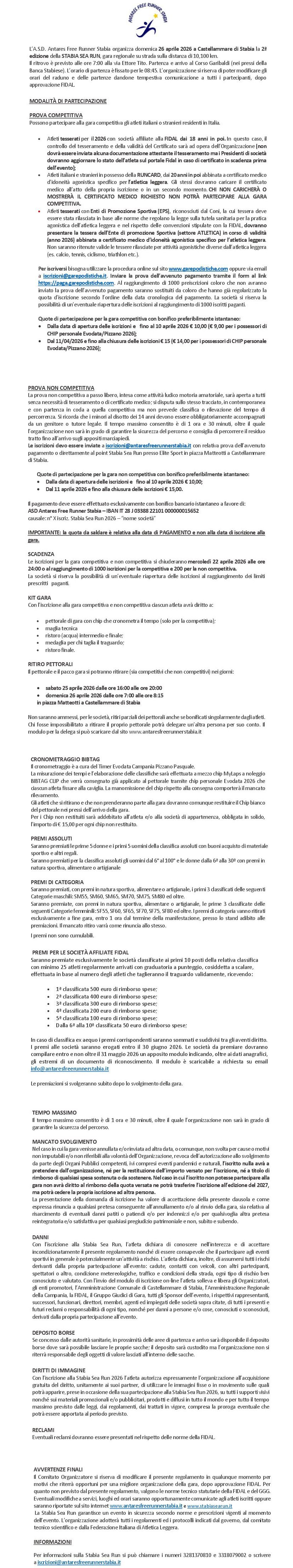 presente che il volantino gara pubblicato nella presente pagina
